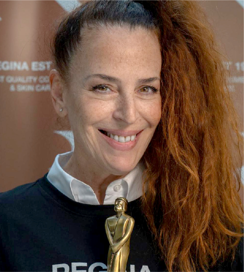 Reconocida con dos Tijeras de Plata y un Martín Fierro de la Moda como mejor maquilladora, su carrera continúa en ex- pansión. Actualmente, Regina lidera cada decisión de su marca, dirigiendo su escuela y formando nuevas genera- ciones de maquilladoras. Además, acompaña a miles de alumnos que encuentran en el maquillaje una forma genuina de expresión, sin reglas predefinidas.