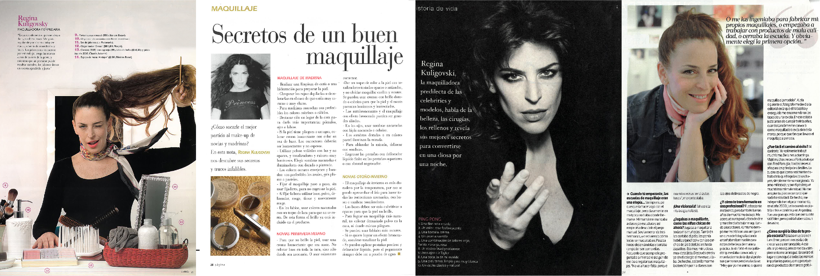 En 2001, inauguró la primera escuela de maquillaje en Buenos Aires, marcando un hito en la formación local. Luego, en medio de una crisis económica, cuando conse- guir productos de calidad era un desafío, decidió crear su propia línea: Regina Cosmetics.